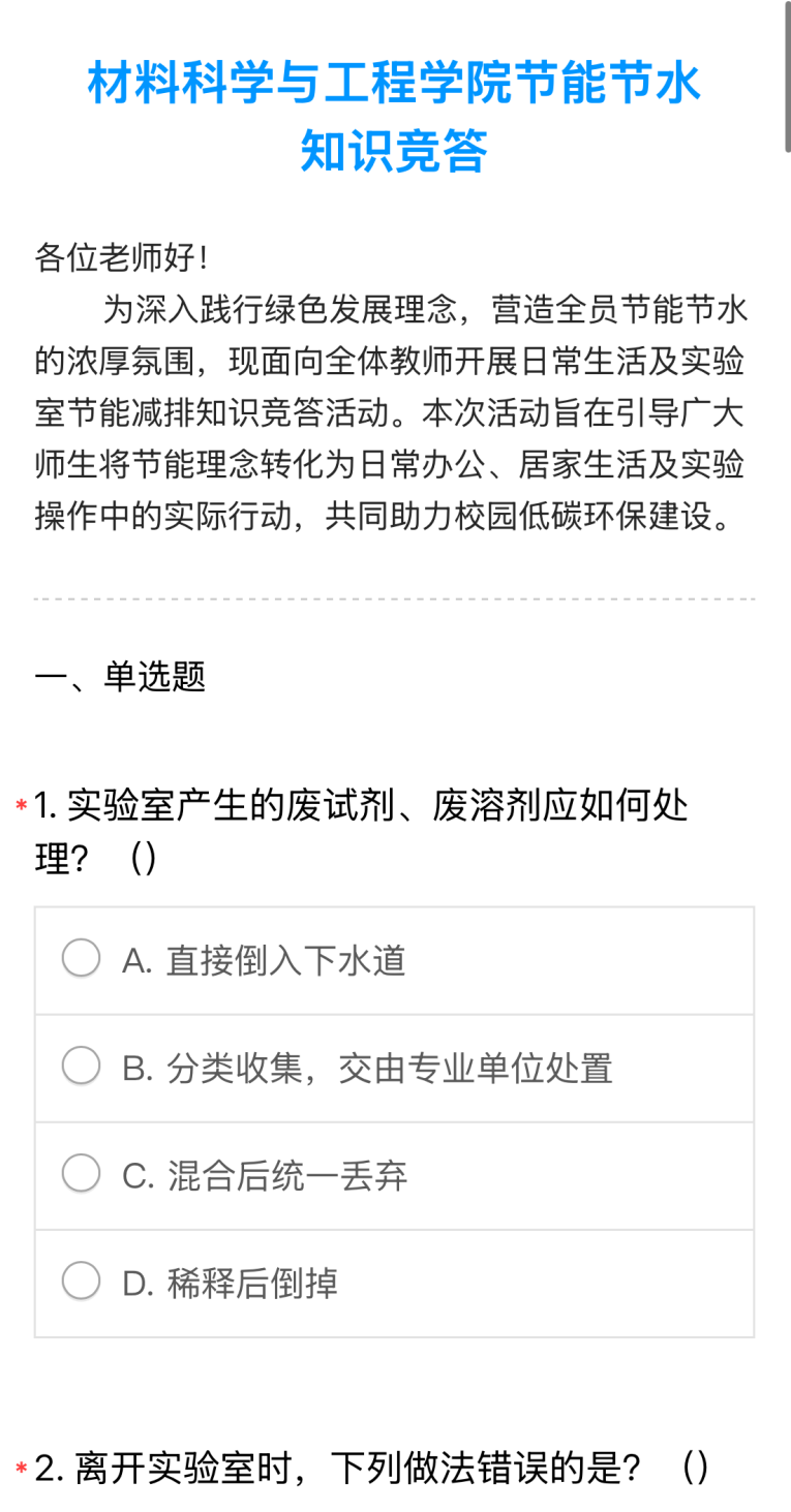 为深入贯彻习近平生态文明思想,落实国家双碳战略目标,切实增强全院师生的资源忧患意识与节约环保理念,引导师生形成节能节水的行动自觉,扎实推进绿色低碳校园建设,近日,betway西汉姆联官网成功举办节能节水知识竞答活动,共吸引50余名师生积极参与。本次竞答活动内容紧扣节能节水主题,涵盖生态文明政策、水资源保护常识、日常生活节能技巧、校园低碳建设举措等多个维度,题目设置兼具知识性、实用性与趣味性。不少参与师生表示,通过本次竞答不仅学到了很多实用的节能节水技巧,更深刻认识到节约资源是每个人应尽的责任,今后会主动把绿色理念融入日常学习生活中。举办此次知识竞答是学院推进节约型校园建设的重要举措之一,核心目的是通过以赛促学、以学促行的方式,广泛普及节能节水科学知识,倡导简约适度、绿色低碳的生活方式,充分调动全院师生参与校园节能建设的积极性、主动性。下一步,学院将持续开展形式多样的生态文明主题教育活动,不断完善校园节能管理机制,让绿色低碳理念深入人心,让节约环保行动蔚然成风,共同建设更加美丽的绿色校园。此次活动的顺利举办,在全院范围内营造了人人关心节能、人人参与节水的浓厚氛围,为后续持续推进绿色校园建设奠定
