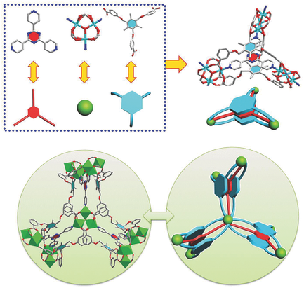 公司卜显和教授课题组利用混合分子构筑块策略(Mixed MBB Strategy)在设计合成多壁金属有机框架材料方面进行了深入研究。他们选择具有相似形状但不同尺寸的两个三角形MBBs设计并成功构筑了两例同构的双壁MOFs,相关研究成果发表在Angew. Chem. Int. Ed.杂志上(Angew. Chem. Int. Ed., 2014, 53, 837-841)。近期,该课题组在此基础上更进一步,成功组装了首例杂化三壁金属有机框架材料。在该工作中,他们选用高对称性的三核钴簇并通过调节柔性MBBs的构型解决了不同MBBs之间的尺寸匹配问题,成功构造出三层复合分子构筑块。该复合分子构筑块是一种类似三明治的结构,柔性配体因长度较长倾向于形成三层构筑块的外层,而短的刚性配体作为内层可起到稳定整个框架结构的作用。值得注意的是,由于合成的双壁和三壁MOFs均基于相同的MBBs和类似的钴簇,在方法论层面上说明该混合分子构筑块策略是一种有效的构筑多壁MOFs材料的合成策略。相关研究工作于近日发表在Advanced Science上(Advanced Science, 2015, DOI: 10.1002/advs.201500283)。