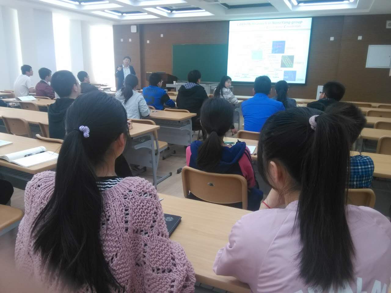 杨教授2个多小时的精彩报道引起了大家的广泛兴趣,针对讲座内容在座老师和同学与杨教授展开了积极讨论。讲座结束时,杨教授希望大家能够积极培养创新思维提高科研嗅觉,并寄语,“花开有早晚,花期有长短,但一样的绚烂美丽!祝福朋友特别是亲爱的员工们,不为瞬间的花开夺目而骄,也不为暂时的含苞未放而馁。”