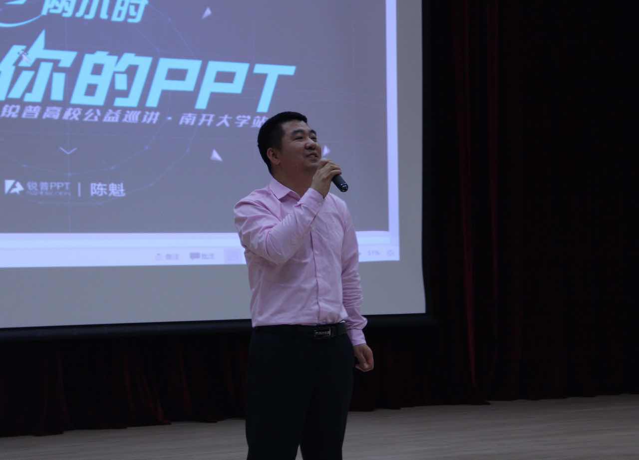开场前,陈魁带着锐普PPT制作的全国高校巡回演讲的宣传片和观众们见面。这一小段的视频向观众们展示了PPT不一样的功能,也说明了PPT行业能够在演示中独占一席的原因。