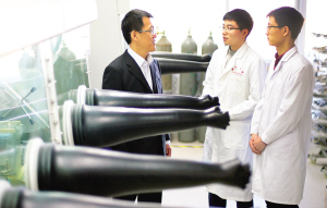 周震介绍说,锂氧气电池是当今新能源领域的研究热点和难点,国内外许多高校和研究机构都致力于该项技术的突破。众所周知,全球气温变暖主要是由二氧化碳等温室气体大量排放造成的,如何减少二氧化碳的排放成为当今社会普遍关注的问题。如果能把二氧化碳变废为宝资源化利用是一条理想的出路。与锂氧气电池相似,如果将氧气换成二氧化碳,就构建出可充电锂二氧化碳电池,可将其称为“可呼吸电池2.0”。周震团队首次将石墨烯用作锂二氧化碳电池的空气电极,以金属锂作负极,吸收二氧化碳释放能量。尽管与一代“可呼吸电池”锂氧气电池相比还很初级,但为推动二氧化碳的资源化利用以及从锂氧气电池实现锂空气电池迈出关键一步。