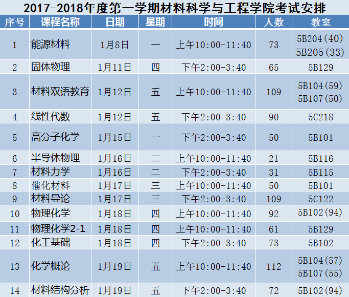 关于2017-2018年度第一学期期末考试时间安排的通知