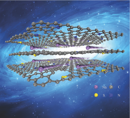 在诸多引起关注的钠离子电池负极材料中,碳基材料具有最好的应用前景。商业化的锂离子电池负极材料石墨因层间距较小、与钠离子相互作用较弱,阻碍了钠离子的嵌入和存储,因而表现出较低的电化学容量,限制了其在钠离子电池中的应用。为解决这一问题,研究小组利用一种简单、可控的方法实现了S原子对溶胶凝胶法制备的富N碳片中特定N原子取代,得到N、S共掺的新型碳材料。这一材料中,S在增大碳层间距离和比表面积的同时,也增加了法拉第反应活性位点,共同实现了提高碳材料储钠容量的目的。研究小组还通过计算模拟揭示了N、S共掺杂对促进钠离子在碳材料层间的嵌入和迁移的作用机制。该材料当其用于钠离子电池测试时,在50 mA g-1条件下比容量为350 mA h g-1,在10 A g-1条件下,仍可实现110 mA h g-1的高容量。材料在大电流1 A g-1下循环1000周后容量保持率高达95%。该材料不仅可以实现硫的可控掺杂,而且可形成稳定的类噻吩结构,有效避免了在充放电过程中向钠硫电池转化而导致循环稳定性降低的弊端。该成果为钠离子电池的实用化提供了一种可行的负极材料解决方案。