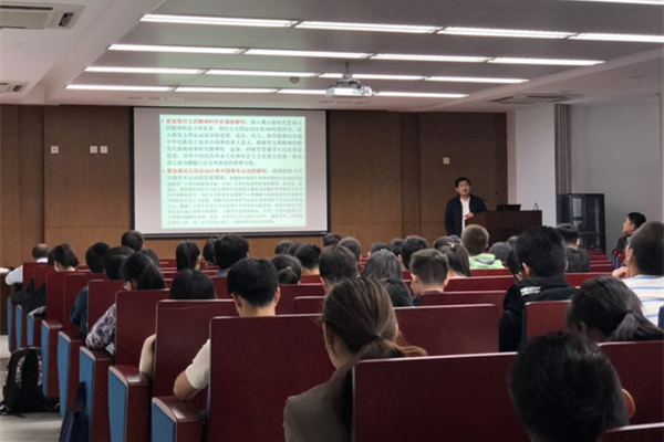 张健以“中国青年与中华民族伟大复兴——学习习近平总书记在纪念五四运动100周年大会上的重要讲话精神”为主题,从“纪念五四运动,发扬五四精神”讲起,通过对人民日报4月21日文章和5月4日社论的分析,深刻解读了“发扬”的内涵。张健强调,发扬不同于简单的赓续和弘扬,而是要继续推陈出新,赋予五四精神新的内涵,让五四精神在新时代放射新的光芒。通过对比习近平总书记在纪念五四运动的两次讲话,张健帮助同学们明确了新时代中国青年运动的主题、方向和使命,即坚持中国共产党领导,同人民一道,为实现“两个一百年”奋斗目标、实现中华民族伟大复兴的中国梦而奋斗。