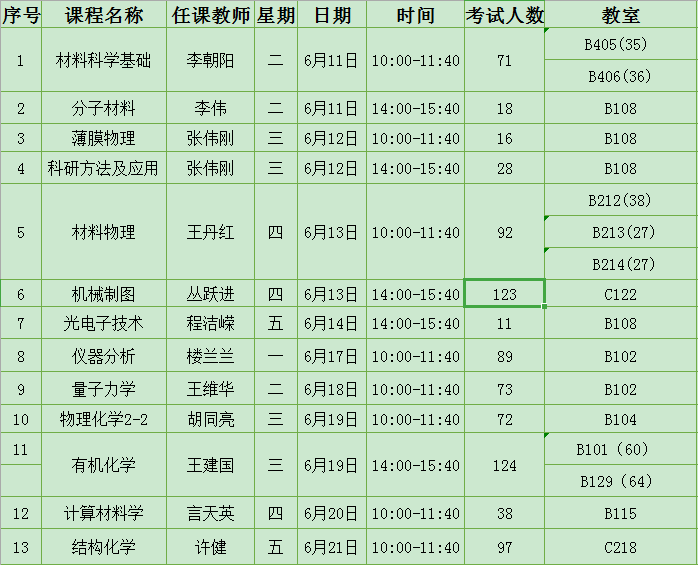 2018-2019学年第二学期期末考试安排