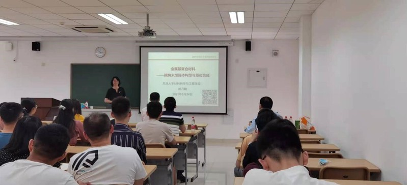 耿林教授以“钛基复合材料的组织设计”为题,详细介绍了钛基复合材料的优异性能,及其在航天领域的重要应用。赵乃勤教授以“金属基复合材料——碳纳米增强体构型与原位合成”为题系统介绍了碳纳米复合材料的原位制备与应用。报告中还讲述了相关研究团队的建设奋斗历程,并以“志不求易者成,事不避难者进”的寄语与大家共勉,要坚定科研信心,坚持创新理念,打造自主创新的重要源头和原始创新的主要策源地。