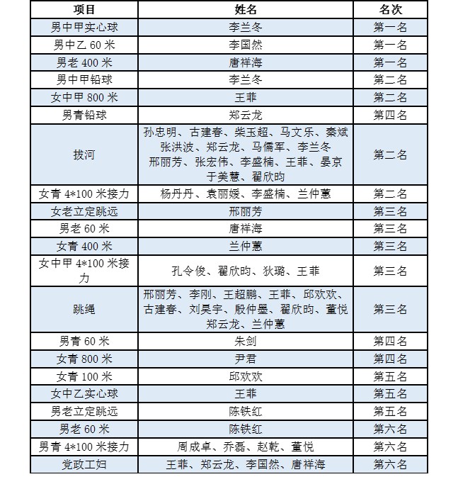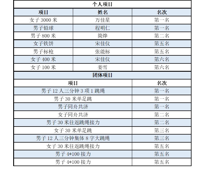 教工跳绳获得乙组第三名