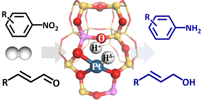 (通讯员 邓欣、武光军)单原子/单位点催化具有原子利用率高和构效关系清晰等特点,是多相催化发展的研究重点。分子筛作为优良的载体,规则的孔道结构赋予了其特殊的空间限域效应,利用这一结构将金属物种稳定在分子筛孔道中(M@Zeolite),可以最大程度的提高原子利用率,同时避免金属物种在催化反应中的烧结和流失。催化选择加氢是化工行业中重要的反应之一,其中,α, β-不饱和醛酮和硝基芳香化合物的选择加氢可用于制备精细化工品和高值衍生物,具有广阔的应用前景。Pt基催化剂自身具有优越的活化氢气的能力,因而常用于催化加氢反应中,而未修饰的Pt基催化剂受限于颗粒尺寸和稳定性,无法兼顾选择性和稳定性。将孤立的Pt物种稳定限域在分子筛孔道内有可能获得用于α, β-不饱和醛酮和硝基芳香化合物选择加氢的催化材料。