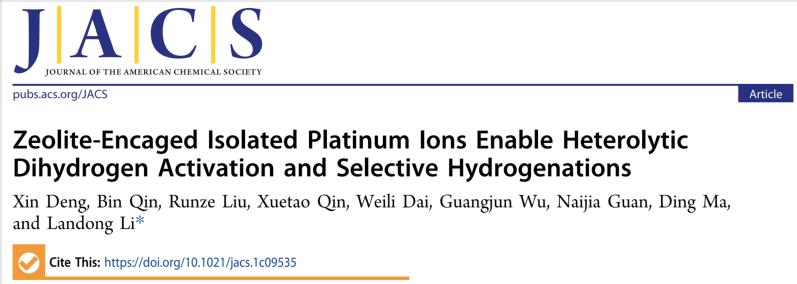 研究论文以“Zeolite-encaged Isolated Platinum Ions Enable Heterolytic Dihydrogen Activation and Selective Hydrogenations”为题发表在Journal of the American Chemical Society上。公司2018级博士生邓欣为论文第一作者,李兰冬教授为通讯作者,betway西汉姆联官网为第一完成单位。该工作得到了国家自然科学基金委、betway西汉姆联官网百名青年学科带头人培养计划等项目资助。