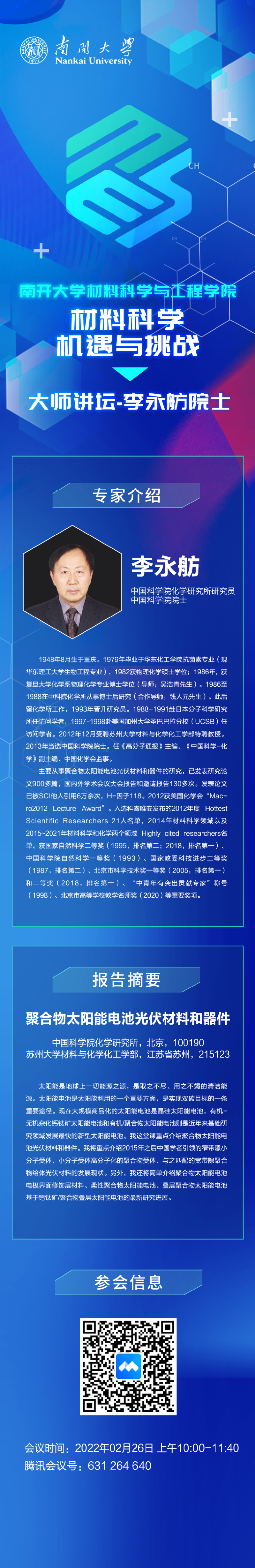 “材料科学机遇与挑战”大师讲坛丨李永舫院士:聚合物太阳能电池光伏材料和器件