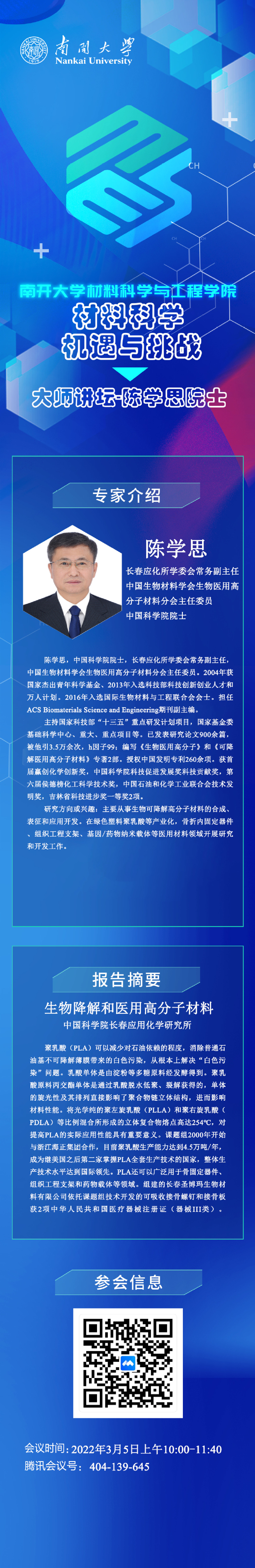 “材料科学机遇与挑战”大师讲坛丨陈学思院士:生物降解和医用高分子材料