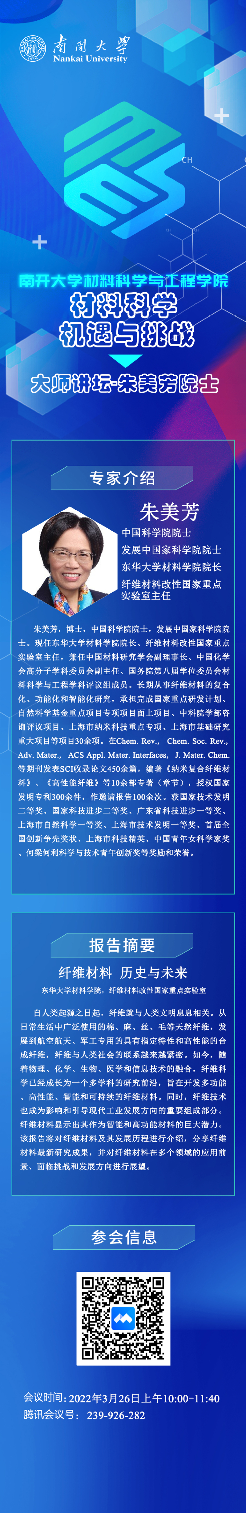 “材料科学机遇与挑战”大师讲坛丨朱美芳院士:纤维材料 历史与未来