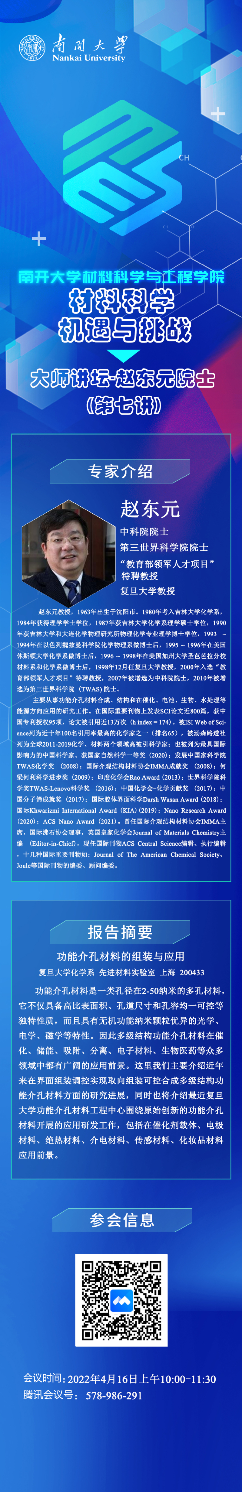 “材料科学机遇与挑战”大师讲坛丨赵东元院士:功能介孔材料的组装与应用