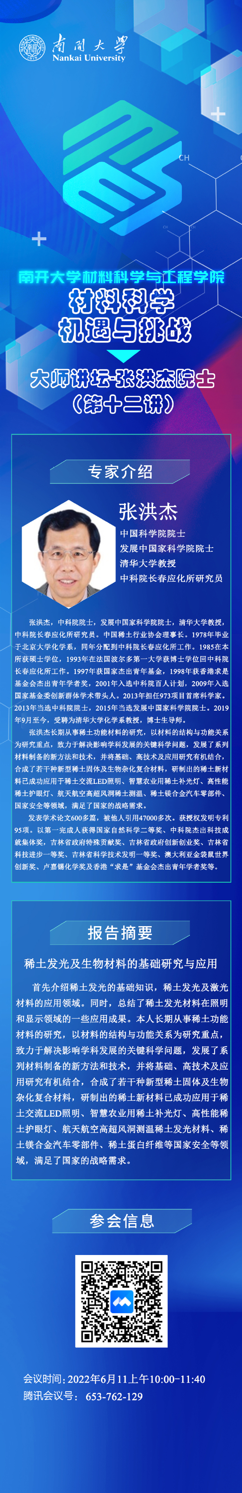 “材料科学机遇与挑战”大师讲坛丨张洪杰院士:稀土发光及生物材料的基础研究与应用