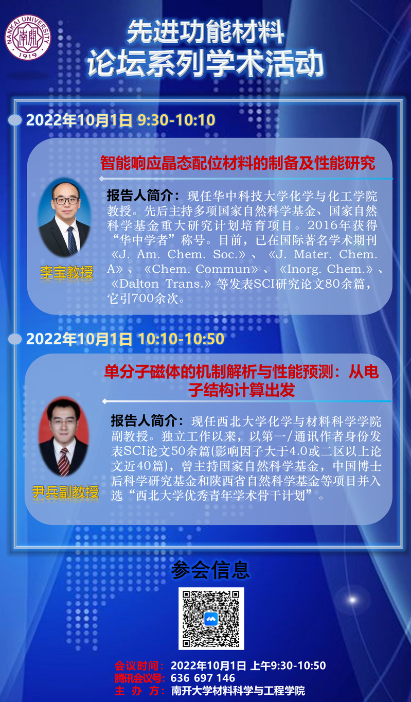 “先进功能材料”论坛丨报告人:李宝教授、尹兵副教授