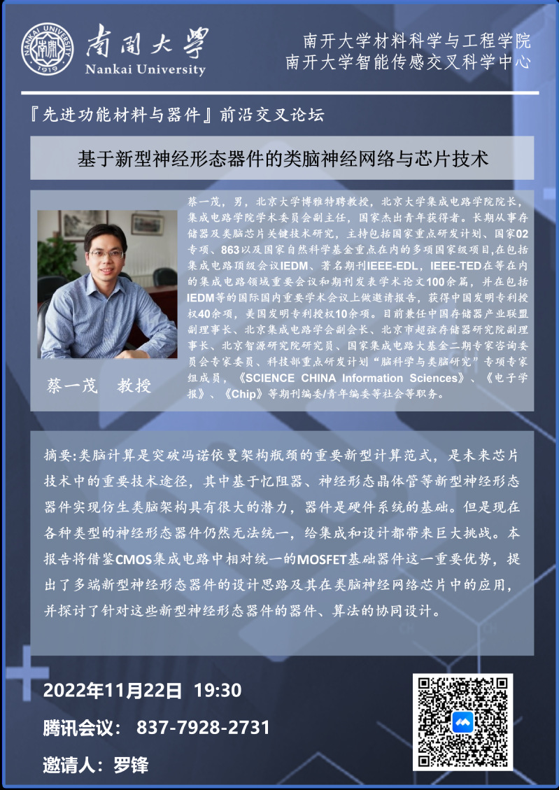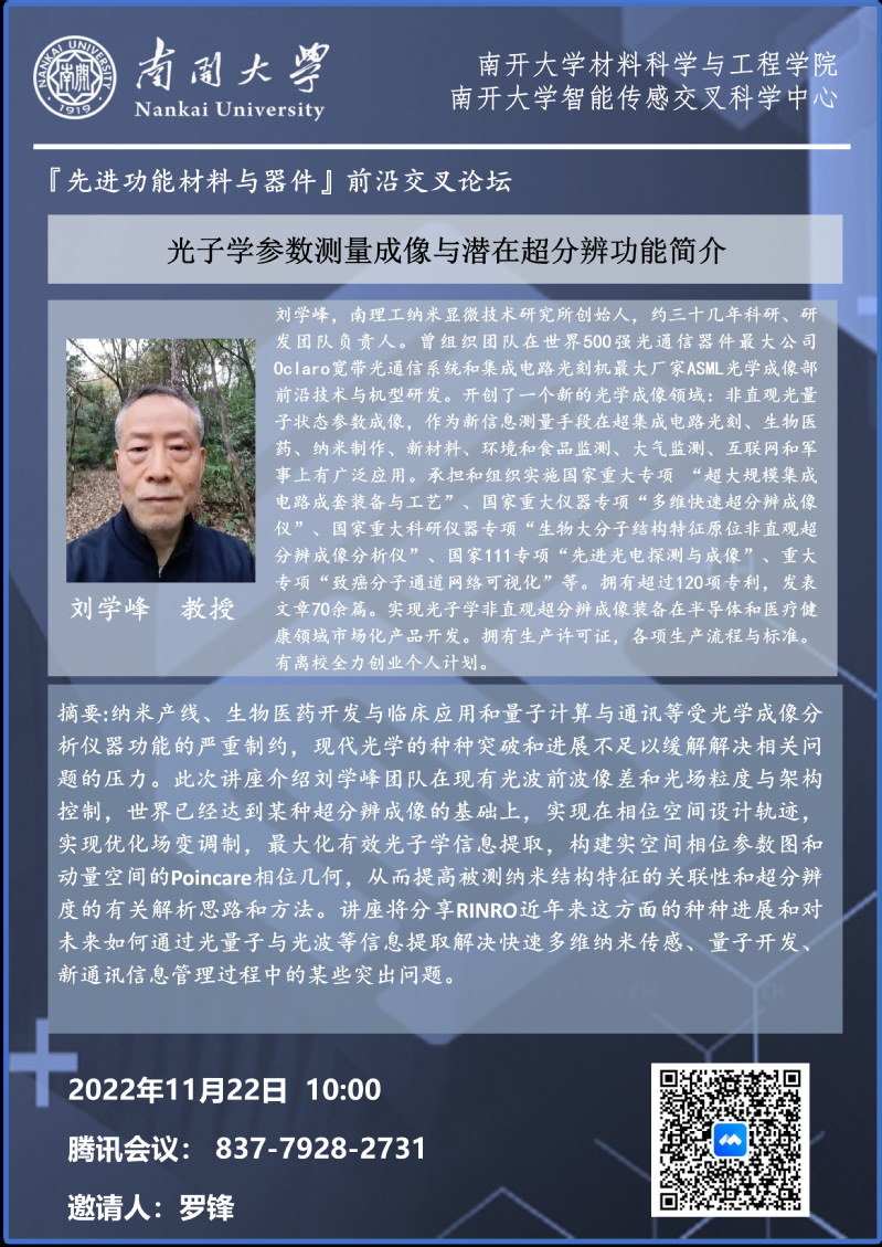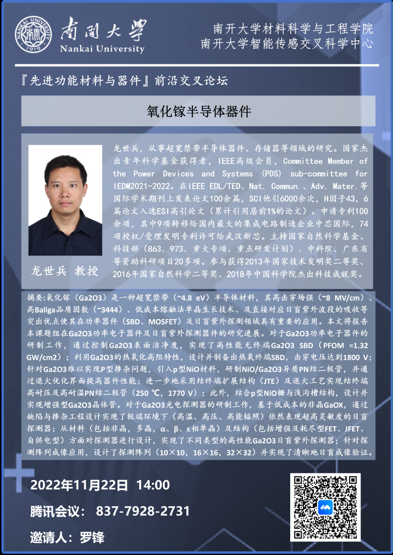 “先进功能材料与器件”前沿交叉论坛丨报告人:刘学峰教授、龙世兵教授、蔡一茂教授
