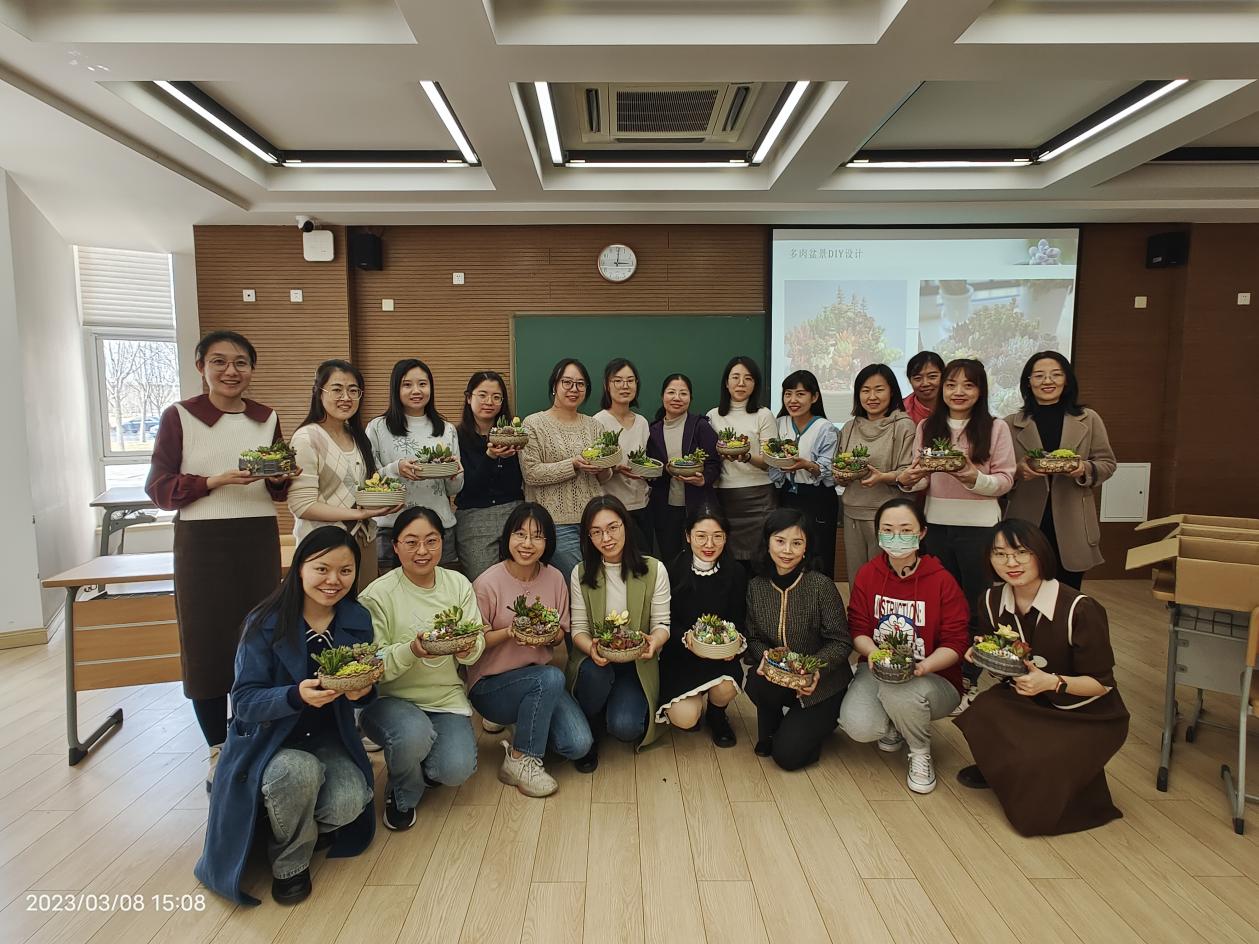 为庆祝“三八”国际妇女节,进一步丰富教职工精神文化生活,提升学院凝聚力,3月8日下午,公司在113教室开展了多肉盆景DIY活动,活动邀请了花艺老师现场授课,公司女教工参与了本次活动。