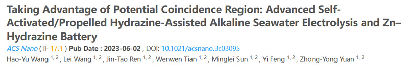 肼辅助水电解是一种很有前途的高效制氢的能源转换技术。由于氢气进化反应(HER)和肼的电氧化之间存在潜在的重合区域,肼的氧化反应(HzOR)在策略组合、装置构建和应用扩展方面表现出特定的优势。Wang等人报告了一种由多孔镍泡沫支撑的界面异质Ni2P/Co2P微球(记为NiCoP/NF)组成的双功能电催化剂,它充分利用了这一潜在的重合区域。由于三维微球结构和Ni2P与Co2P之间强大的界面耦合效应,NiCoP/NF表现出优异的双功能电催化性能,在10 mA cm-2时,HER和HzOR所需的超低过电势分别为70和230 mV。当使用NiCoP/NF作为两个电极时,与其他化学底物的电氧化相比,HzOR辅助的水电解表现出相当低的电位。此外,0.1V的电位重合区使得自激活/推进的肼辅助碱性海水电解、含肼废水处理和锌-肼(Zn-Hz)电池的应用变得现实。这项工作中提供的电位重合区概念对水电解和其他相关应用具有重要意义。