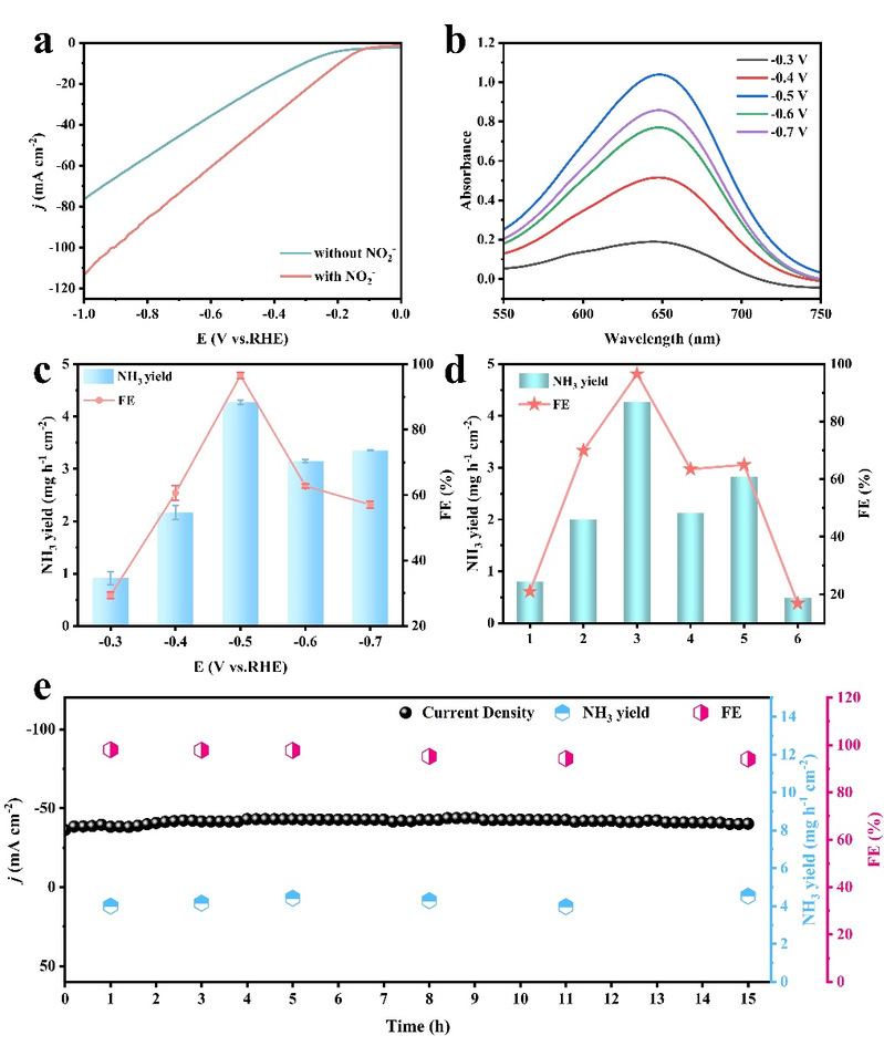 电催化亚硝酸盐还原反应( NO2−RR )为可再生 NH3 的合成和处理亚硝酸盐离子污染的水生生态系统提供了新的思路。许多研究致力于开发具有优异选择性的 NO2−RR 电催化剂。然而,构建同时促进 NO2−RR 和析氧反应( OER )的双功能催化剂对于降低电催化制氨的能耗和成本具有重要意义。