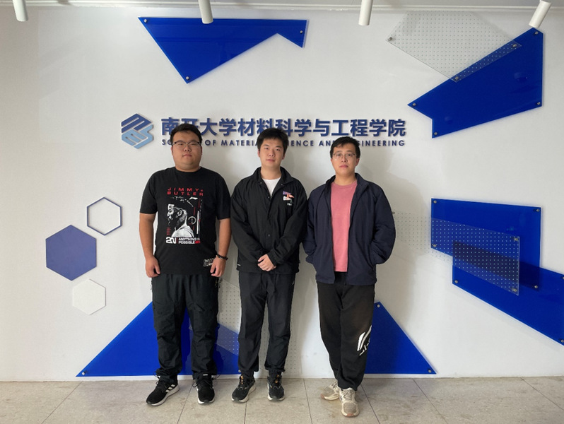 团队合影:博士生赵天宏(左),本科生洪亦谦(中),博士生白浩宇(右)