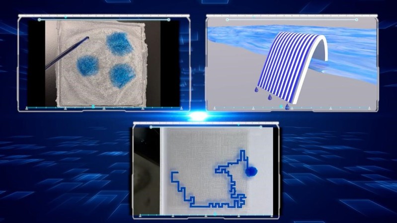 在此次获奖的项目中,参赛团队向大自然学习,尤其是以荷叶超疏水性质为基础的排水界面和以角膜超亲水性质为基础的导水界面,针对目前超亲水材料存在处理方法繁琐、结构依赖性高、功能整合能力不强等问题。该团队提出了以超亲水环保纳米涂层和多级微米结构相结合,设计了一系列具有自发驱水能力的仿生超亲水液体输运多级界面材料,以期优化开放表面上的高效液体输运过程。