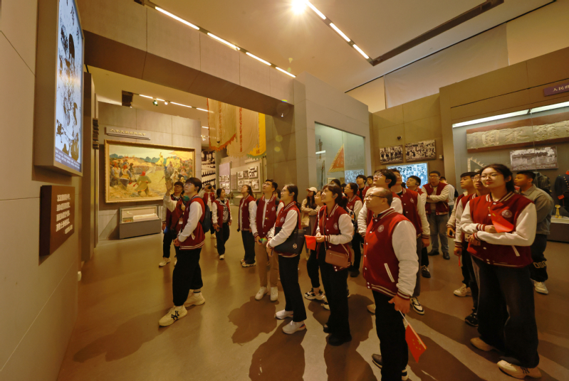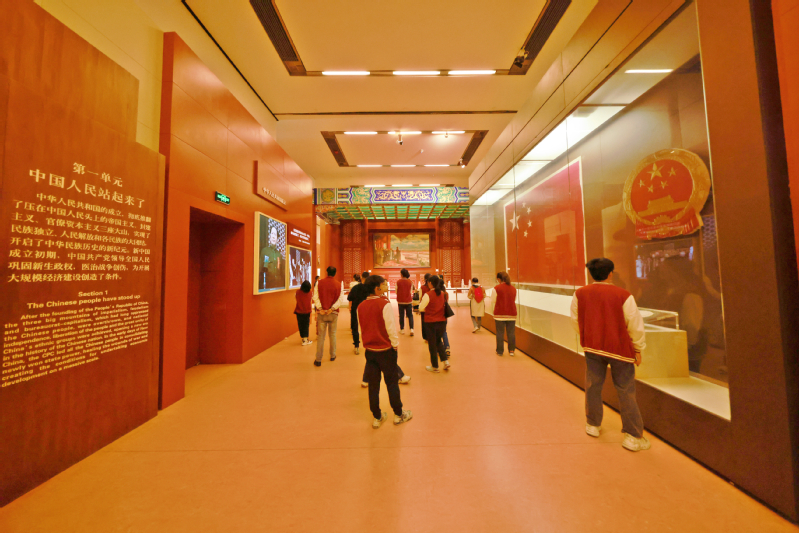 升旗仪式结束后,师生们集体来到国家博物馆《复兴之路》展馆学习。