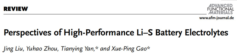 近日,来自betway西汉姆联官网的言天英教授与高学平教授合作,在国际知名期刊Advance Functional Materials上发表题为“Perspectives of High-Performance Li–S Battery Electrolytes”的综述文章。该综述文章比较了Li–S电池在不同电解质中的转换机制,为电解质的挑战和设计方面提供了一个基本的理解,同时汇总了近期不同电解质在Li–S电池中的研究进展。
