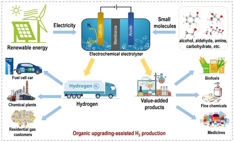 目前,各种有机小分子化合物,如醇、葡萄糖/木糖、醛、多碳化合物和胺类,已被广泛研究,作为电化学合成反应的阳极底物。这些有机小分子可以在阳极端氧化,将羟基或醛基转化为羧基,而不生成分子氧。有机小分子的氧化反应具有多重优势:首先,它们具有较低的阳极电位,相对于传统的OER,这使得它们在需要更低电解电压的实际电化学应用中更具优势。这可以降低能源消耗,提高系统效率。其次,不生成分子氧有助于消除潜在的爆炸风险,提高了电化学系统的安全性。第三,阳极电氧化反应产生有价值的反应中间体,可用作进一步的化学转化或合成的基本原料来源。此外,阳极电氧化反应具有高度的选择性,可以为特定产品的生产提供有力支持,允许精确合成和控制有机分子的转化。因此,这些有机小分子电化学氧化反应的实际应用潜力巨大,引起了广泛的关注。在这一领域仍然存在一些挑战:高操作电压:尽管理论上有机小分子的氧化具有较低的氧化电位,但实际测试中,操作电压远高于理论预期。因此,需要开发高效和稳定的催化剂,优化反应条件,以降低操作电压并提高能量转化效率。选择性生产:如何实现对特定阳极产物的高度选择性仍然具有挑战性,因此需要深入研究反应机制和改进操作条件。设备耐久性:有机分子的腐蚀性和自由基的生成可能导致设备的寿命缩短,增加操作的复杂性和系统的总成本。多碳化合物的挑战:在使用多碳物质作为有机底物的情况下,较高的反应温度和反应压力可能引发底物的聚合反应,覆盖活性位点,导致催化剂的失活。多样化的有机废弃物:为了实现高效的氢气生产、高附加值化学合成和有机废弃物处理的多重效益,有必要探索多种有机废弃物的电化学策略。解决这些挑战将推动有机物小分子辅助水电解产氢技术的发展。