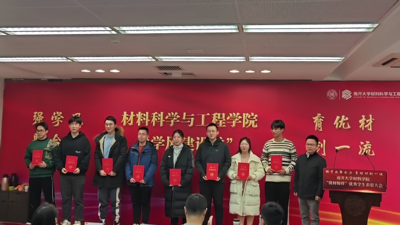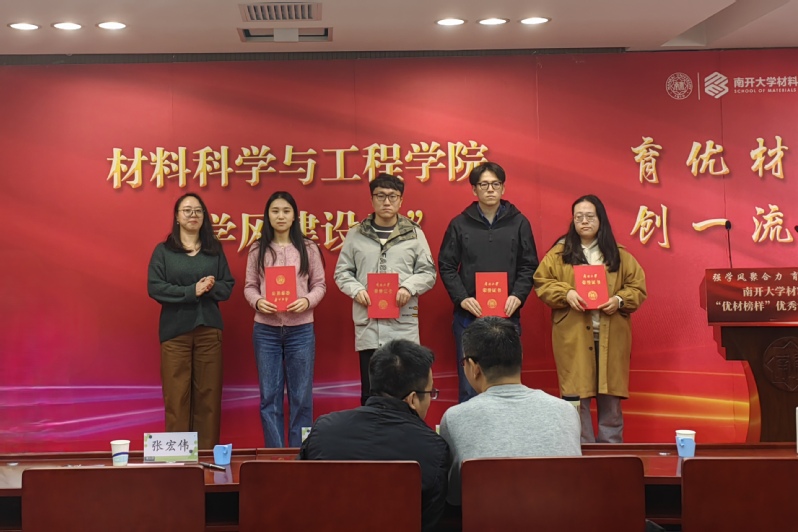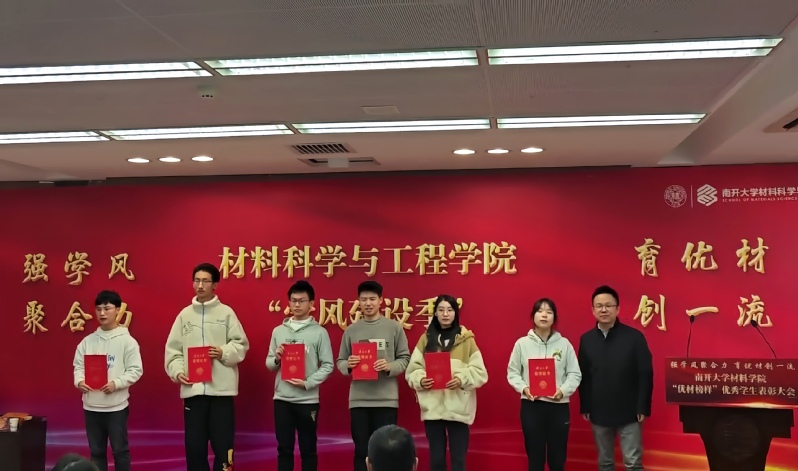 李刚在致辞中向获奖员工表示祝贺,寄语员工要继承南开先贤的爱国传统,学习身边榜样的奋斗精神,践行强国一代的使命担当,为材料学科创建一流贡献自己的力量!随后,李国然、张宏伟为获得表彰的优秀员工颁发荣誉证书。