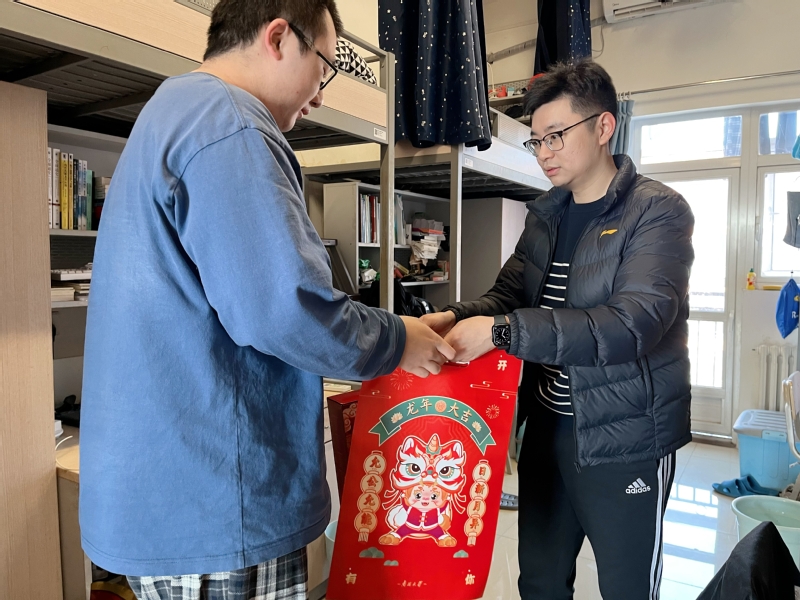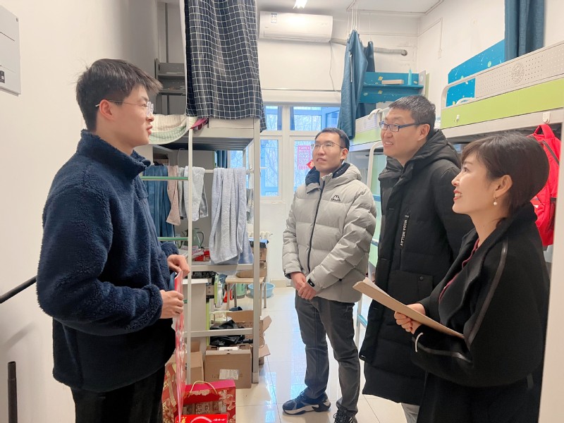 学工团队在慰问走访过程中,一边与同学们拉家常、问冷暖、听心声,调研了解同学们在学业、生活上的困难需求;一边严格检查实验室和宿舍的安全隐患。据悉,材料学院高度重视寒假期间安全稳定工作,1 月 30 日召开全院安全工作部署会,院领导多次带队进宿舍、进实验室开展安全督查,辅导员与留校员工每日联系,重点关注特殊困难群体;通过微信公众号宣传实验安全、消防安全、交通安全、心理安全等方面的警示案例,以谆谆教诲实现警钟长鸣,确保员工平安祥和过春节。