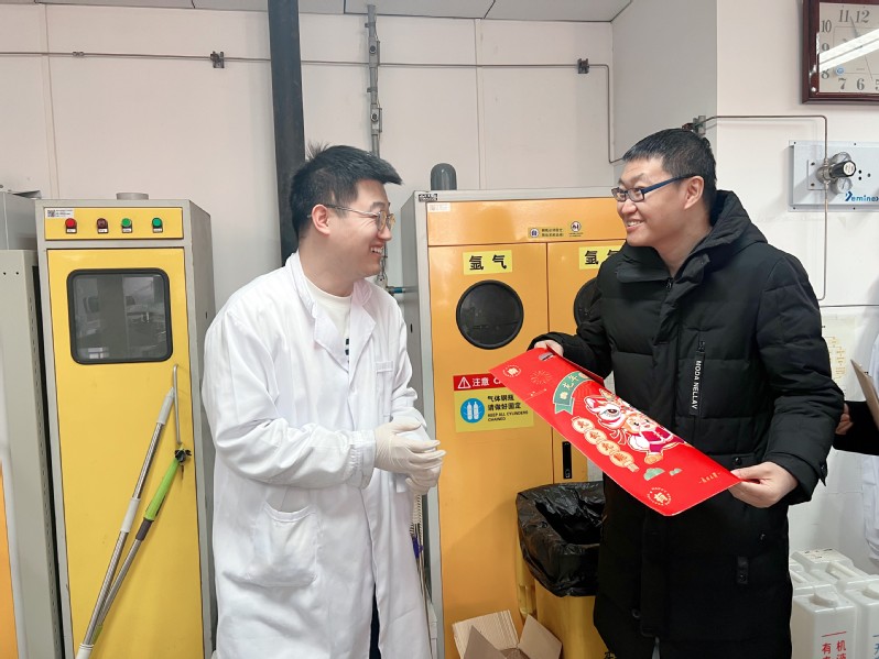 (通讯员:杨晓颖)甲辰龙年腊月二十九,南开校园里张灯结彩、年味十足。公司党委副书记兼副经理李刚、团委书记杨晓颖及光子学电子学材料研究中心副研究员、研究生辅导员杨扬、本科生辅导员董悦,走进实验室、员工宿舍看望慰问春节留校员工,发放新春慰问大礼包,代表公司党委、团委向同学们送去新年祝福。