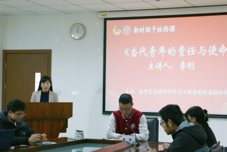 团课开始,全体起立奏唱团歌。随后,李刚老师围绕青年的“理想与目标”、“责任与使命”两个方面开始讲授团课。会议上,李刚老师通过现场询问同学们“上大学后是否定下目标?是否坚持向着目标前进?”为切入点,以全国人大代表、中国科学院院士、betway西汉姆联官网副董事长陈军在全国两会上接受媒体采访,于亿万观众面前,响亮发出“南开声音”为例,分析我国基本国情,强调“想透、说清、干实”的思想方法和工作方法,指出青年理想远大、信念坚定,是一个国家、一个民族无坚不摧的前进动力。一代人有一代人的长征,一代人有一代人的担当。我们这一代青年,生逢伟大时代,当以实现中华民族伟大复兴为己任,树立正确的理想、坚定的信念,勇做走在时代前列的奋进者、开拓者、奉献者,争做高水平科技自立自强排头兵,不辜负党的期望、人民期待、民族重托。
