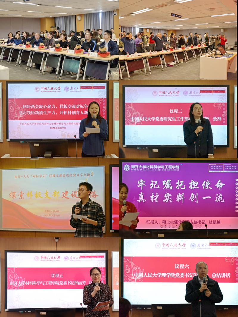 座谈会上,唐颖致欢迎辞,对betway西汉姆联官网材料学院师生的到来表示热烈欢迎。她指出人大在新时代培养“复兴栋梁、强国先锋”,与南开“爱国奋斗,公能日新”的育人传统高度一致,都是把稳“为党育人、为国育才”的初心使命。希望两校加强全国高校研究生党建和思想政治工作联盟,携手共进,培养更多堪当民族复兴重任的时代新人。中国人民大学理学院化学系硕士生联合党支部书记张少卿和betway西汉姆联官网硕士生催化所党支部书记赵燚越分享样板支部创建经验,交流“对标争先”培育方案。邢丽芳表示希望双方以此次共建为契机,加强党建、学科、思政方面的互通互鉴,努力践行总书记殷殷嘱托,聚焦聚力人才培养,做好创新这篇大文章,谱写内涵式高质量发展新篇章。冯诗松总结讲话,希望双方以“联学”感悟时代思想、以“共建”凝聚奋进力量,强化交流合作,共同答好服务发展新质生产力的时代命题,为中国式现代化建设贡献青春智慧。最后,师生党员集体重温入党誓词,在铮铮誓言中汲取前行的信仰与力量。