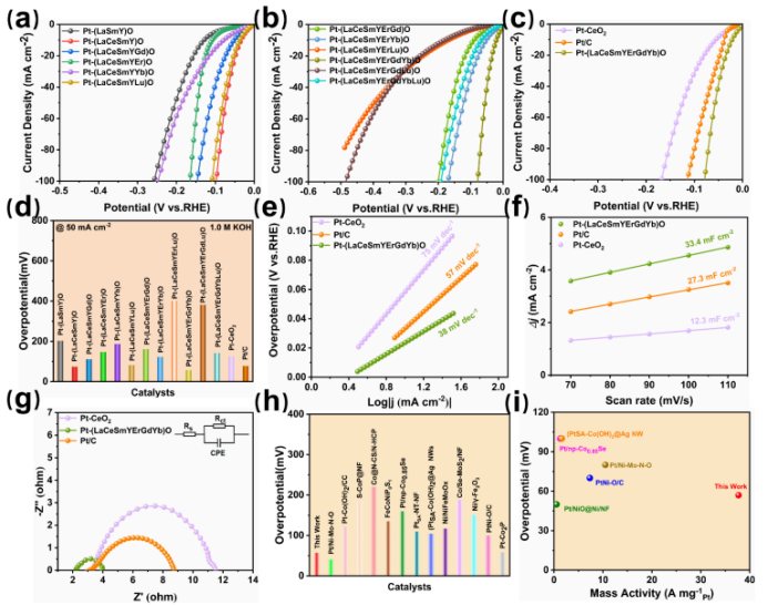 不同稀土元素的共同贡献保证了质子的最佳结合强度和水的快速解离,这有利于HER在酸性、中性和碱性环境中的性能。
