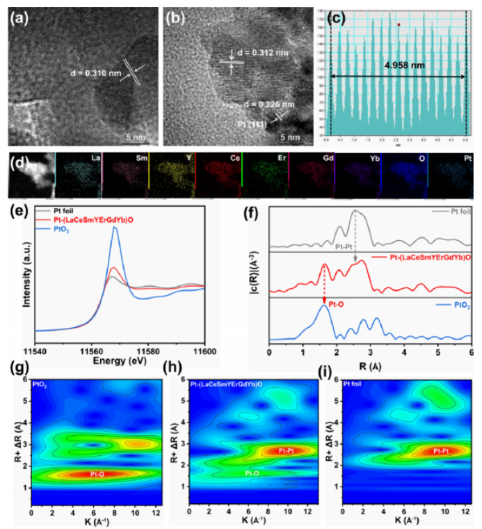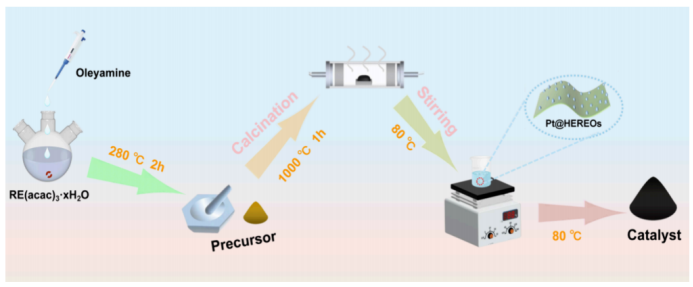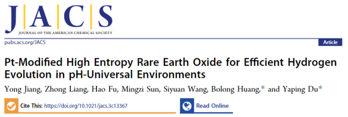 针对上述挑战,betway西汉姆联官网的杜亚平教授和香港理工大学的黄勃龙教授等人在Journal of the American Chemical Society发表论文,该团队首次通过简单的一锅法和蒸发溶剂法制备了锚定在高熵稀土氧化物(HEREOs)空位上的Pt纳米颗粒(NPs),其具有丰富的氧空位,可适用于所有pH范围的水电解高效制氢,作者还系统地研究了稀土、Pt NPs和空位之间相互作用所引起的独特的电子调制。具有丰富表面缺陷的HEREOs不仅稳定了负载在衬底表面的Pt NPs,还对Pt NPs的电子结构有显著的调制作用。