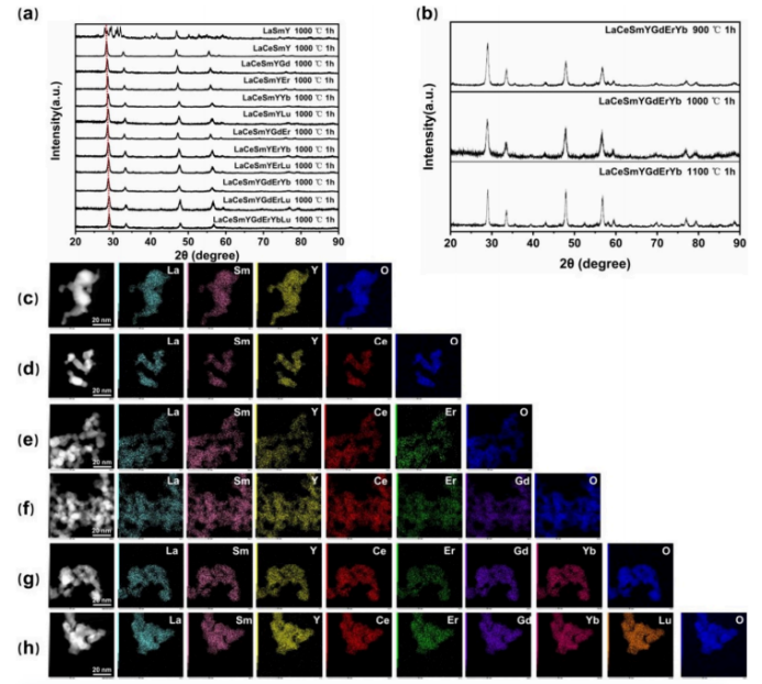 作者制备的Pt-(LaCeSmYErGdYb)O表现出优异的电化学性能,在0.5 M H2SO4、1.0 M KOH和1.0 M PBS环境下,仅需12、57和77 mV即可达到100 mA cm-2的电流密度。