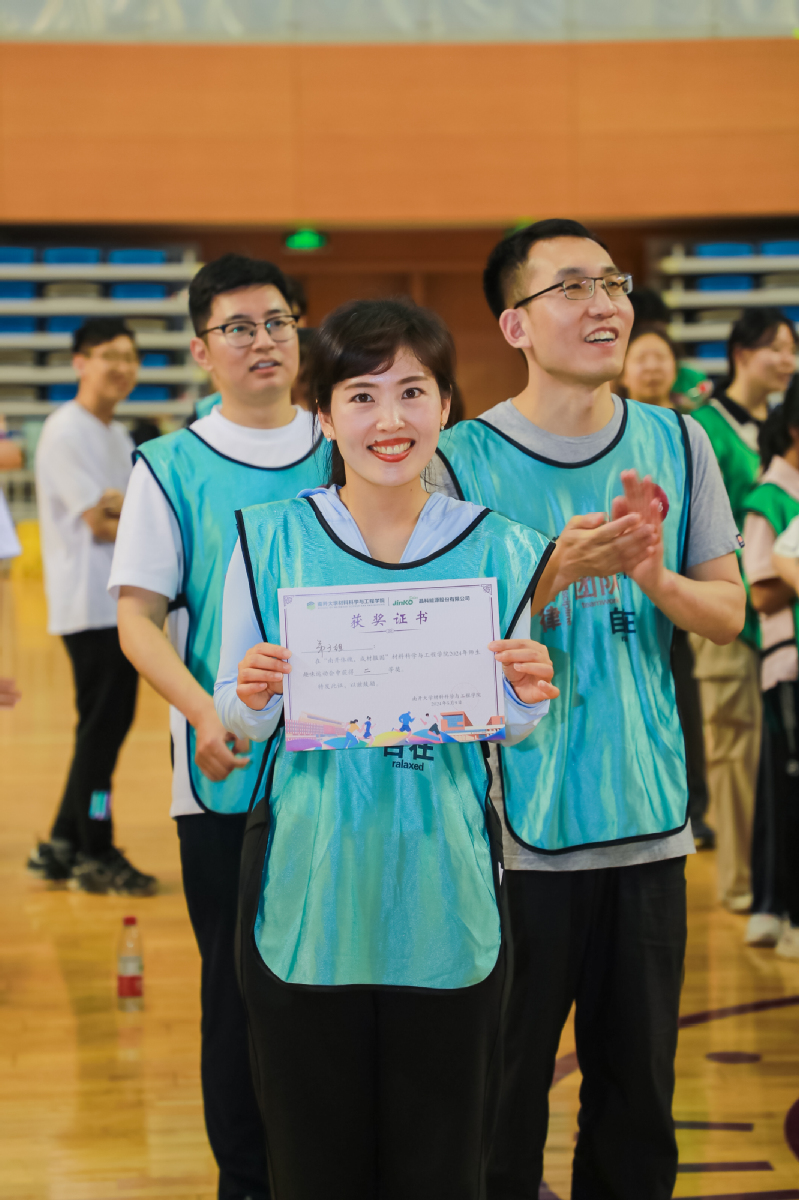 比赛尾声,邢丽芳为获奖团队颁发证书并宣布运动会圆满结束。据悉,材料学院坚持立德树人根本任务,认真贯彻落实习近平总书记关于体育工作的重要论述,高度重视新时代体育工作,多次在全校运动会上取得优异成绩,长年举办“材料学院体育节”系列赛事,赓续体育传统,强塑体育文化,增强师生体质,健全师生人格,团结带领广大师生在赛道上跑出强国建设、民族复兴的“加速度”,不断为中国式现代化建设汇聚磅礴青春伟力。