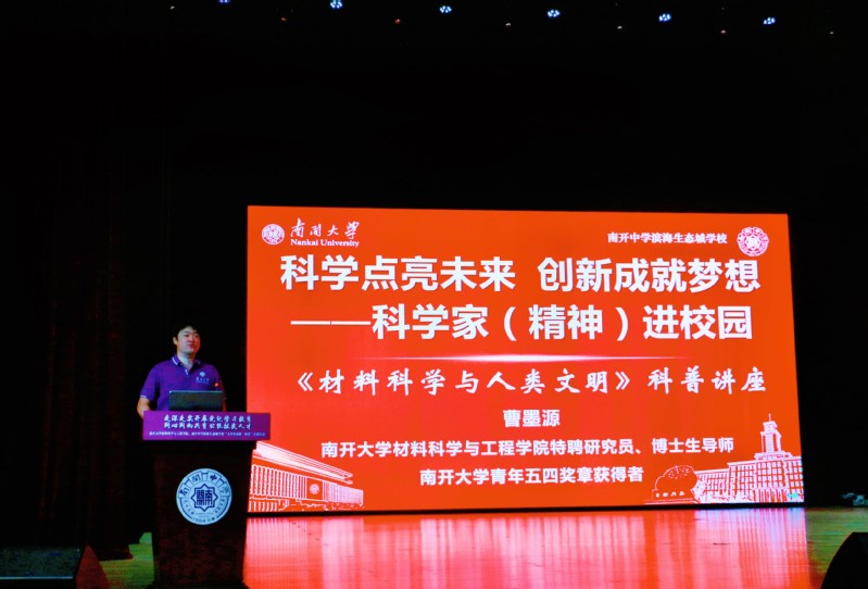 为推进科技自立自强、培养拔尖创新人才、提升材料学科认知度,曹墨源受聘为中学“科学教育导师”,毕伟董事长颁发聘书。曹墨源带来《材料科学与人类文明》科普讲座,介绍了betway西汉姆联官网材料科学与工程学科作为教育部“双一流”学科的教学水平、科研成果、团队力量,激发了中员工探秘“南开材料之美”的无限热望。