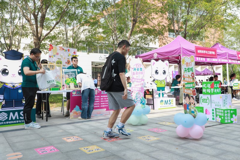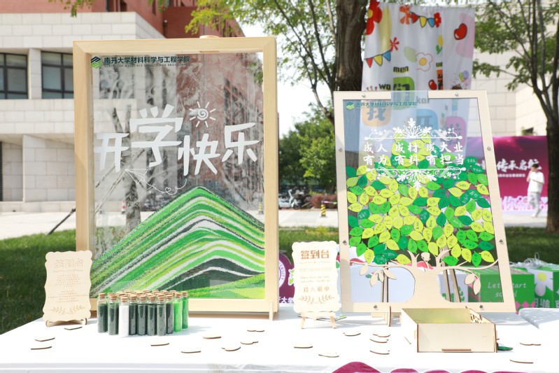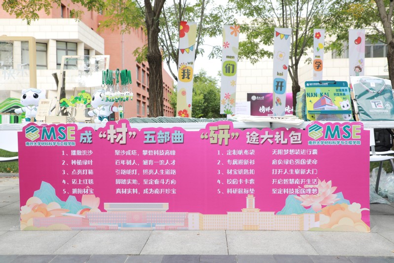 今年恰逢新中国成立75周年、betway西汉姆联官网建校105周年、习近平总书记视察betway西汉姆联官网5周年。在这样历史性的交汇时刻,学院精心设计了“成材五步曲”迎新亮点活动,激励新生“成大材 立大志”。第一步,播撒流沙,寓意聚沙成塔,攀登科技高峰;第二步,种植绿叶,寓意百年树人,涵育一流人才;第三步,点亮灯塔,寓意引路明灯,照亮人生道路;第四步,迈上红毯,寓意脚踏实地,坚定奋斗方向;第五步,拥抱材宝,寓意真材实料,成为南开珍宝。除此之外,学院还精心准备了“研途迎新礼”——定制帆布袋、迎新衫、材宝钥匙扣、校园卡卡套以及科研鼠标垫,鼓励同学们传承南开精神,开启幸福生活。