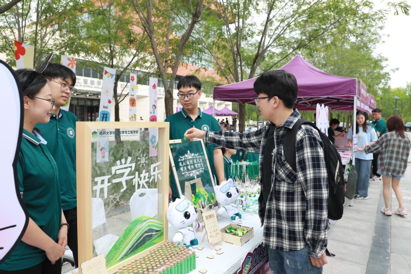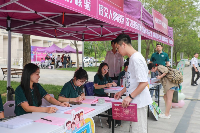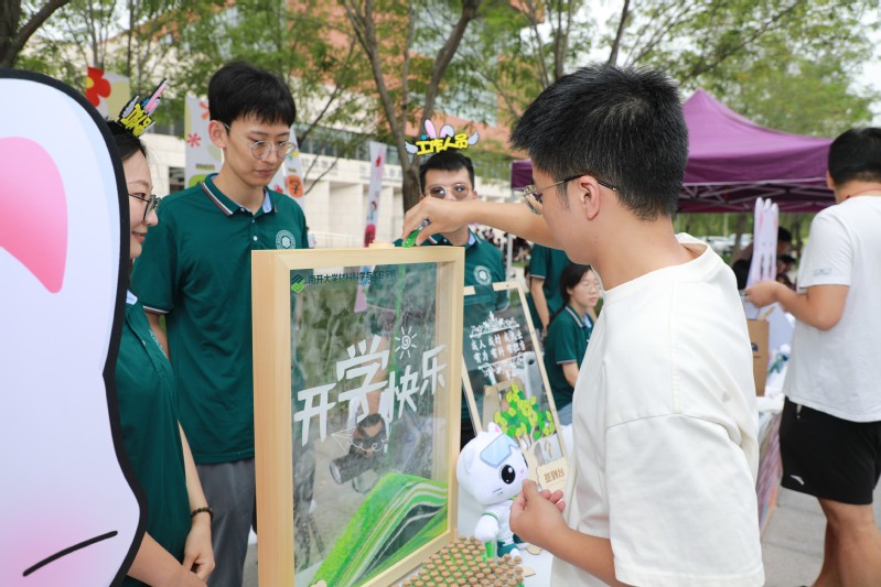 早晨八点,学院门口已是一派热闹景象。身份核验、领取校园卡、学历复查……入学报到手续有序开展。志愿者们热情迎接每一位新生的到来,帮助新南开人快速适应校园生活。