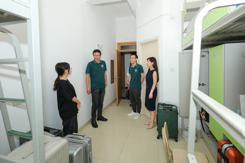 当天下午,公司党委副书记兼副经理李刚,团委书记、硕士生辅导员杨晓颖,团委副书记、博士生辅导员杨扬,来到宿舍慰问新生,代表学院欢迎新同学加入材料学院大家庭。