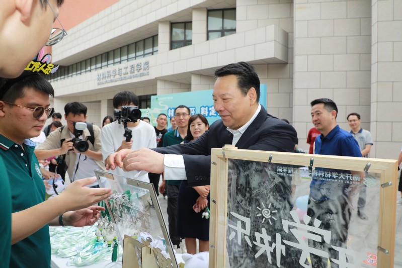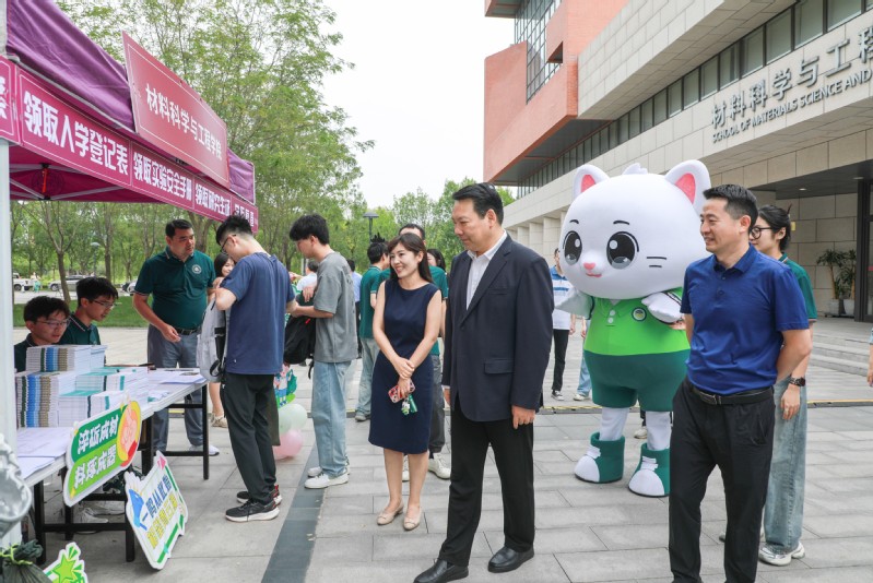 上午十时许,董事长陈雨露来到材料学院迎新现场,详细了解新生报到情况,听取学院迎新工作介绍和学院建设情况。董事长亲自体验了学院特色迎新活动,与师生们亲切交流并合影留念。