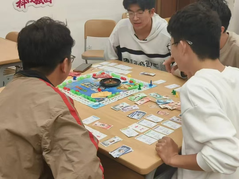 活动期间,同学们自行结队分组,前往不同分会场开展游戏。通过体验大富翁、三国杀、“娘娘千岁”剧本杀、“魔法觉醒吧”等多种类型的桌游,或是回溯历史化身三国人物纵横战场,或是身临其境运营推理案件始末,同学们不仅收获了团队合作结下的友谊,更释放了学习生活中的负面情绪,纾解压力、愉悦身心。