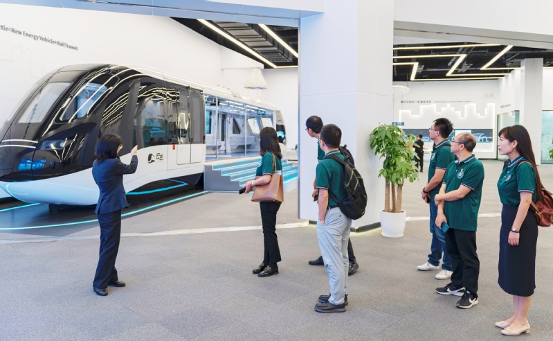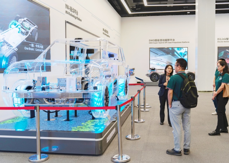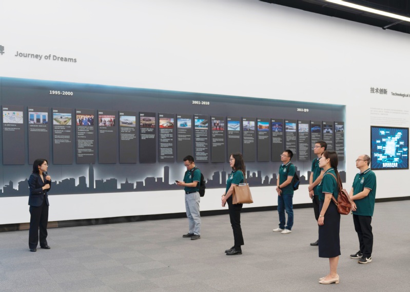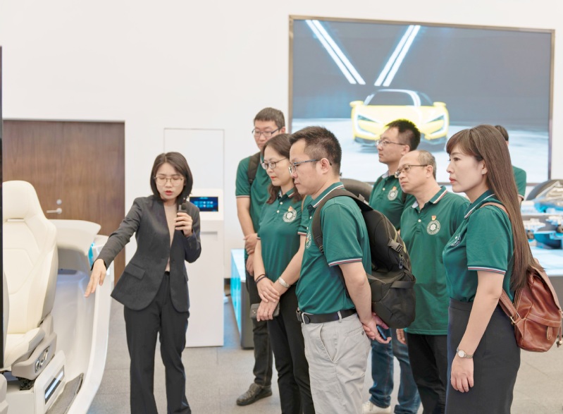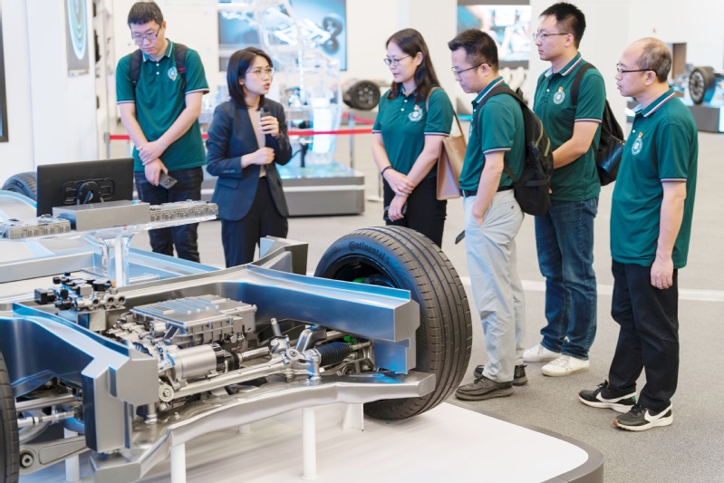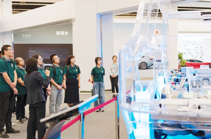师生们认真参观比亚迪礼宾楼展厅,仿佛置身一座新能源汽车“博物馆”,一站式体验一流的汽车知识科普讲解,沉浸式感受新能源汽车的技术魅力和未来交通的无限可能,被中国新能源汽车的崛起之路深深震撼。