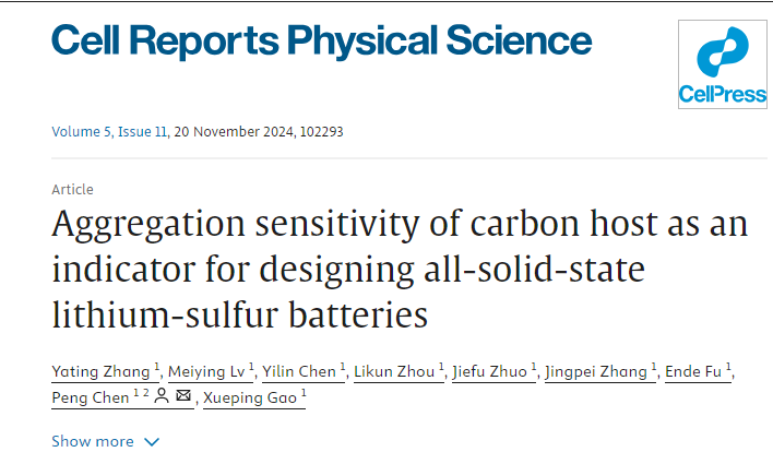 题目:Aggregation sensitivity of carbon host as an indicator for designing all-solid-state lithium-sulfur batteries