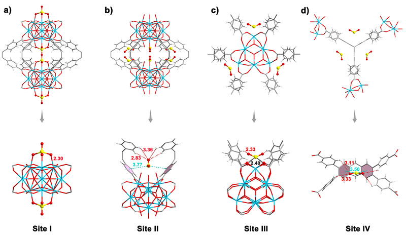 图5. NKU-201-Y中的SO2主要吸附位点。