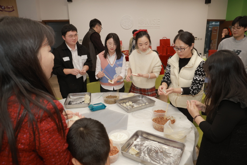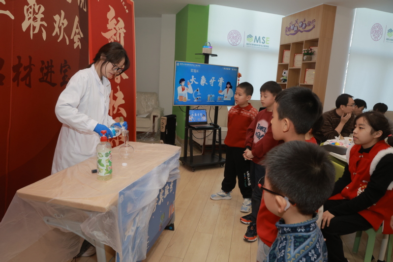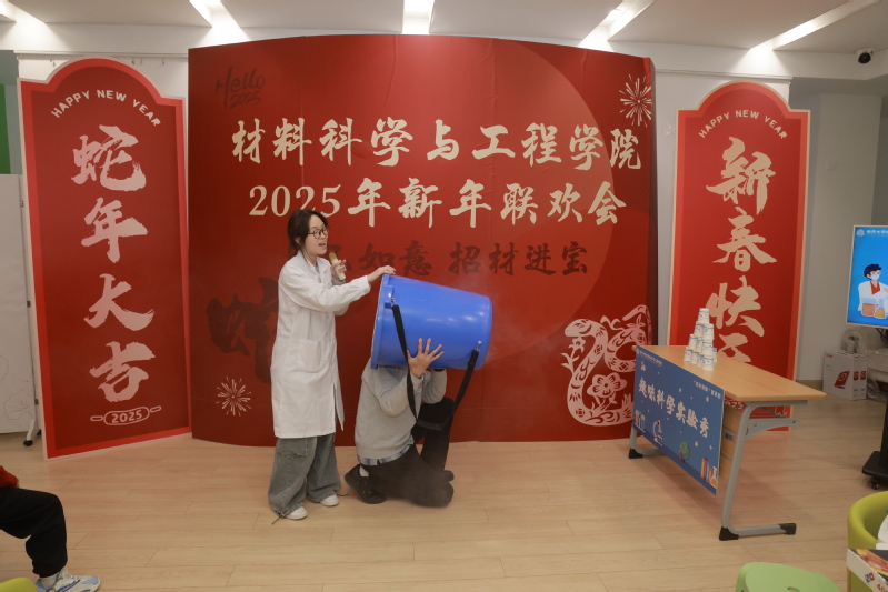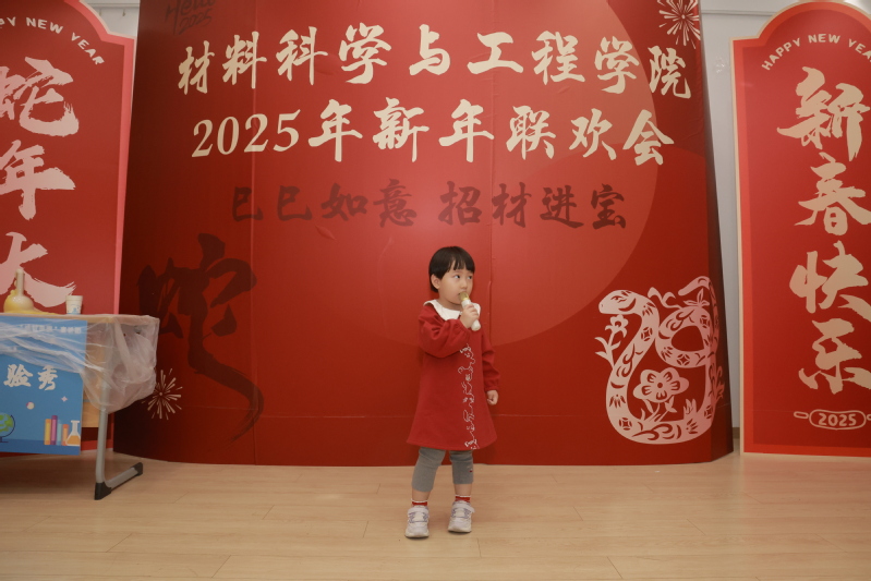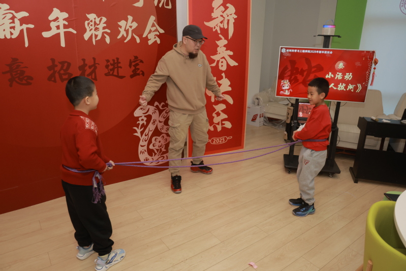 联欢会现场,师生及家属们的歌曲、舞蹈、乐器演奏等节目轮番上阵,尽展高雅的情操与丰富的才艺。“成材报国”宣讲团带来趣味科学实验秀,以沉浸式互动体验,充分展现科学之美、材料之美。“成语接龙”、“你比划我猜”、“二人拔河”等趣味游戏,进一步加强了师生们的凝聚力、向心力、战斗力。