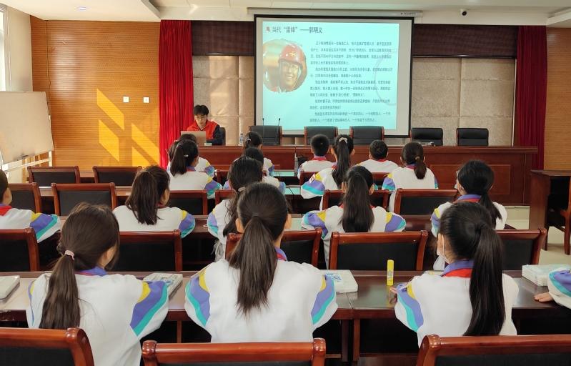 宣讲结束后,志愿者还为同学们讲解了如何在家庭和校园中践行雷锋精神,争做新时代的“小雷锋”。同学们深受鼓舞,纷纷表示要以雷锋为榜样,从身边小事做起,帮助他人,奉献社会。活动最后,全体同学一起朗读了雷锋语录,铿锵有力的声音回荡在教室,表达了同学们传承雷锋精神、争做追“锋”少年的坚定决心。
