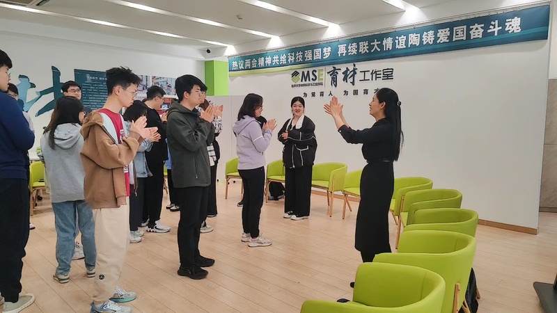 活动伊始,国家二级心理咨询师文迪老师化身“节奏大师”,带领大家开启破冰环节。教室里,同学们围成一个“神奇的”圆圈,两个趣味十足的节奏小游戏瞬间打破了陌生的隔阂。响指清脆、鼓掌热烈、拍腿有力、剁脚沉稳,四种不同的音色交织在一起,如同奏响了欢快的乐章。同学们沉浸在节奏的世界中,气氛逐渐活跃起来。