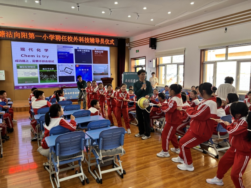 天津市滨海新区塘沽向阳第一小学董事长王诚、betway西汉姆联官网成材报国科普团成员出席活动,活动由天津市塘沽向阳第一小学教导处主任李瑒主持,塘沽向阳第一小学师生100余人参加了此次活动。